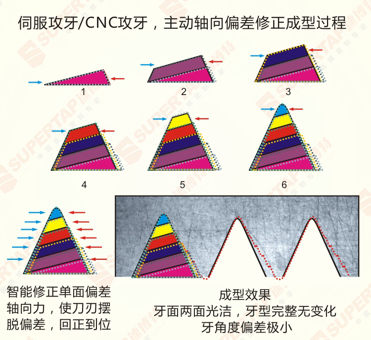 經(jīng)過幾個月的不斷實驗。我們最終做出了能夠修正軸向力偏差的絲錐攻出完美的牙型。當(dāng)我們把用我們研發(fā)的絲錐攻出來的牙的產(chǎn)品送到廠家的時候,工程師無法相信那是絲錐攻出來的效果,當(dāng)即上機試刀,當(dāng)看到效果一樣時,工程師對我們的工匠精神以及堅韌意志表示徹底的折服。